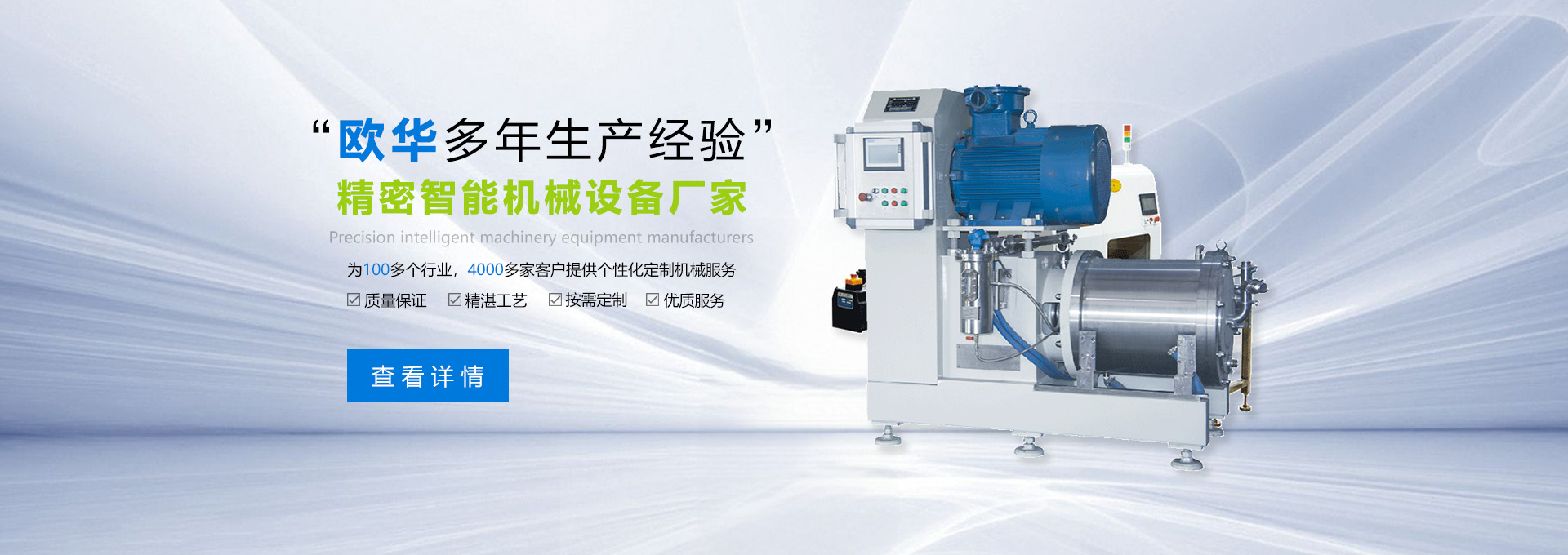 東莞市歐華機械有限公司,是一家專業(yè)從事濕法研磨、化工分散、成套智能化設備的生產型企業(yè)。公司兩大生產基地,分別座落于擁有中國制造業(yè)之都的東莞厚街與中國重工業(yè)之城的湖南株洲。是集研發(fā)、設計、銷售、服務為一體的高新技術企業(yè)。